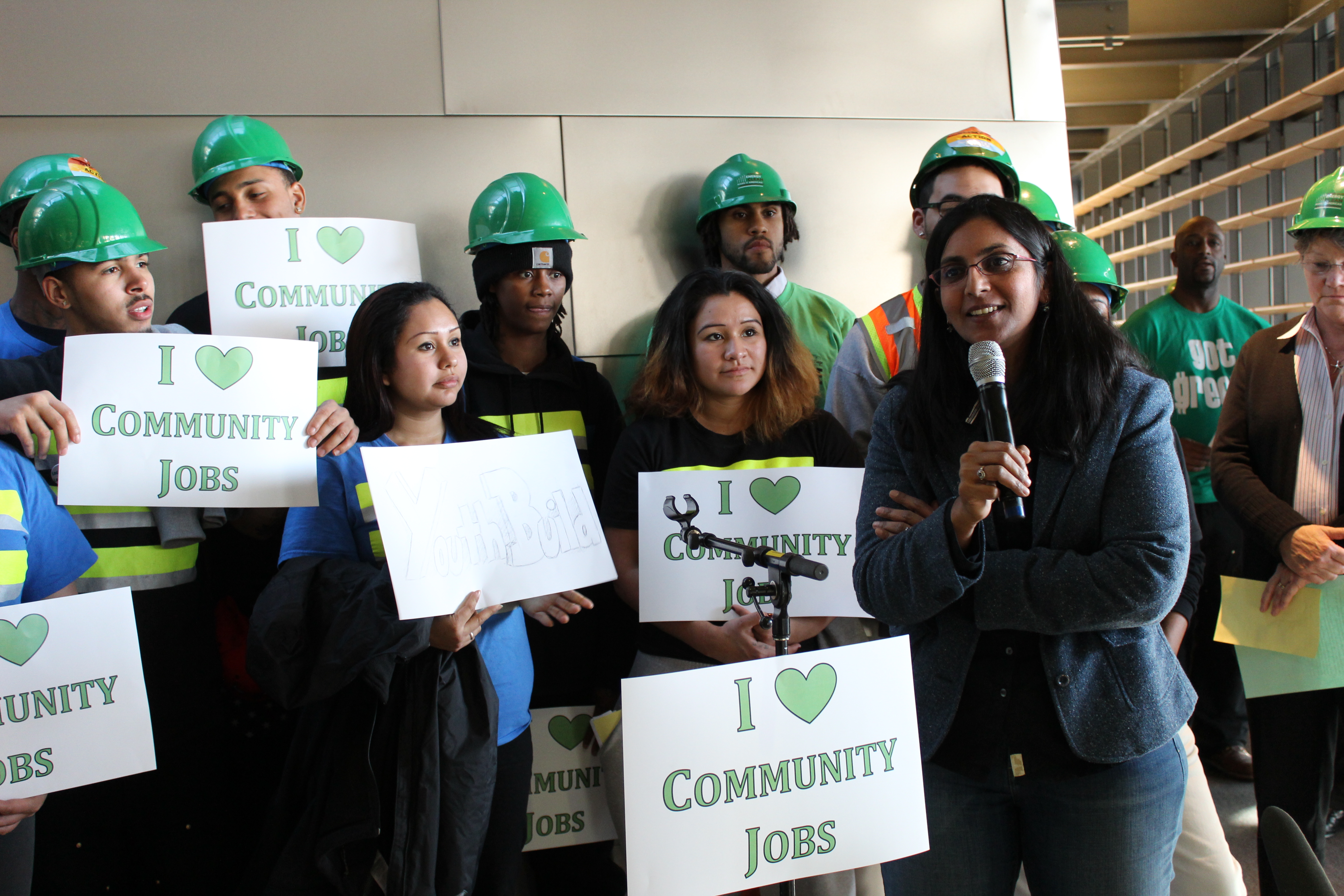 City Councilmember Kshama Sawant with workers (Photo: Seattle City Council via Flickr)