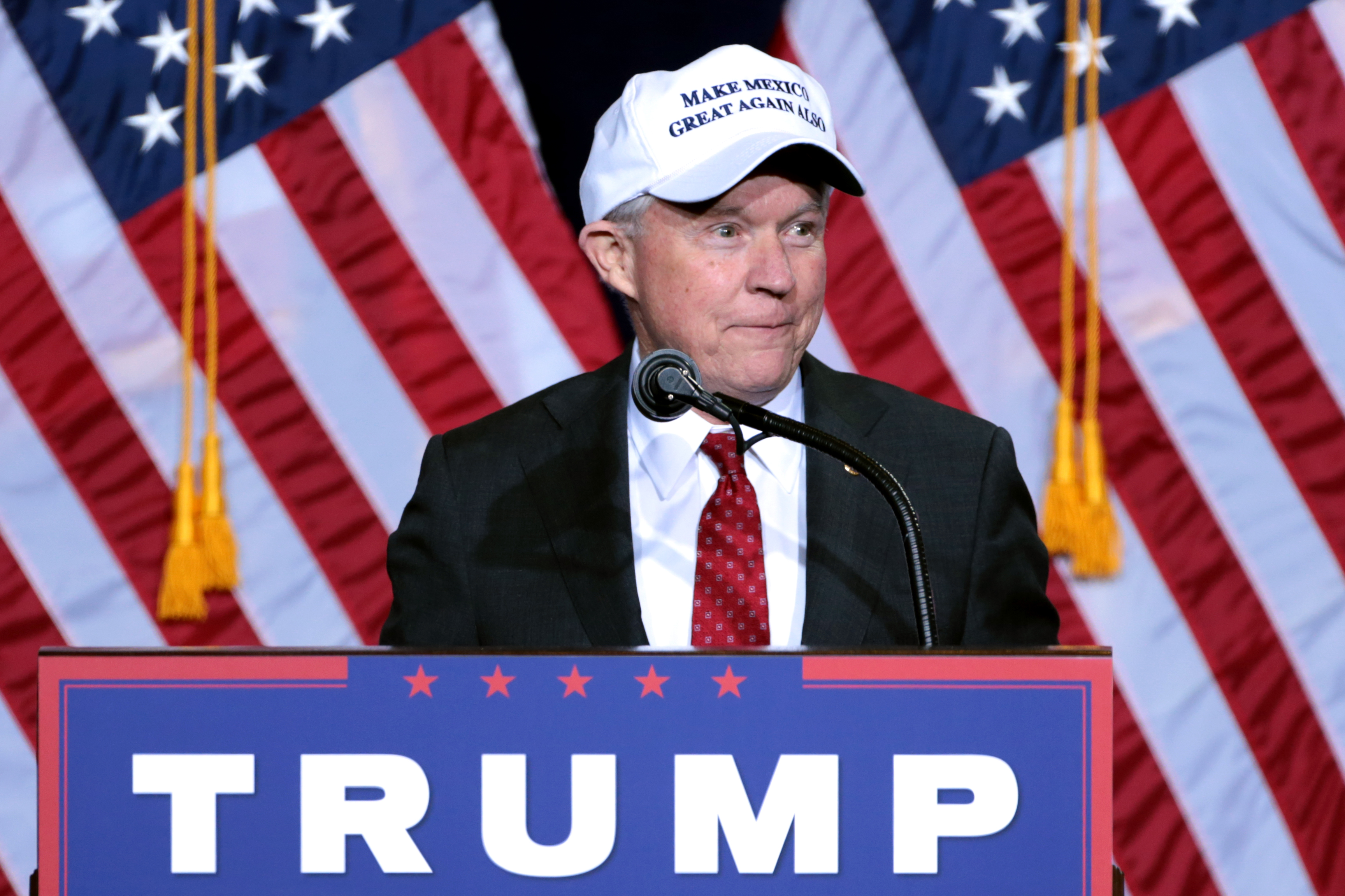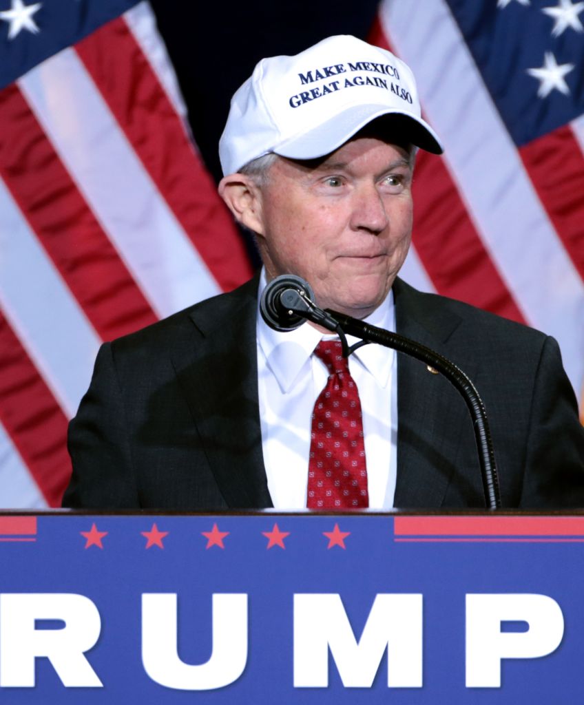 Jeff Sessions_Trump_campaign Published July 7, 2017 at 3456 × 2304 in Jeff Sessions_Trump_campaign US Senator Jeff Sessions of Alabama speaking to supporters at an immigration policy speech hosted by Donald Trump in Phoenix, Arizona (Photo: Gage Skidmore/ flickr CC 4.0).