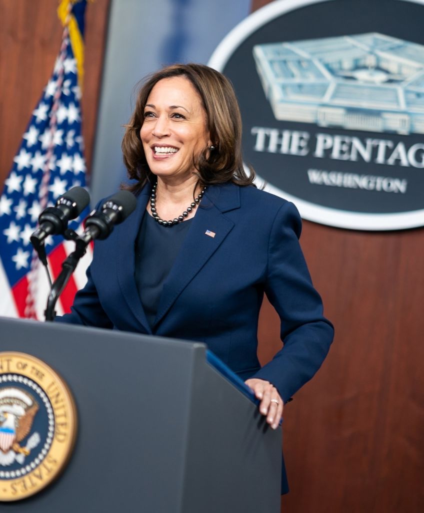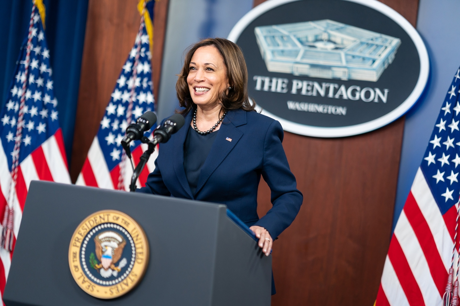 Vice President Kamala Harris delivers remarks during a press conference Wednesday, Feb. 10, 2021, at the Pentagon in Arlington, Virginia. (Official White House Photo by Adam Schultz)