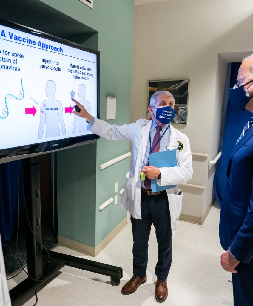 President Joe Biden, joined by Counselor to the President and White House COVID-19 Response Coordinator Jeff Zients, receives a briefing from Director of the NIH Dr. Francis Collins and Chief Medical Adviser to the President and Director of the National Institutes of Allergy and Infectious Diseases Dr. Anthony Fauci Thursday, Feb. 11, 2021, at the Dale and Betty Bumpers Vaccine Research Center (VRC) at the National Institutes of Health in Bethesda, Maryland. (Official White House Photo by Adam Schultz)