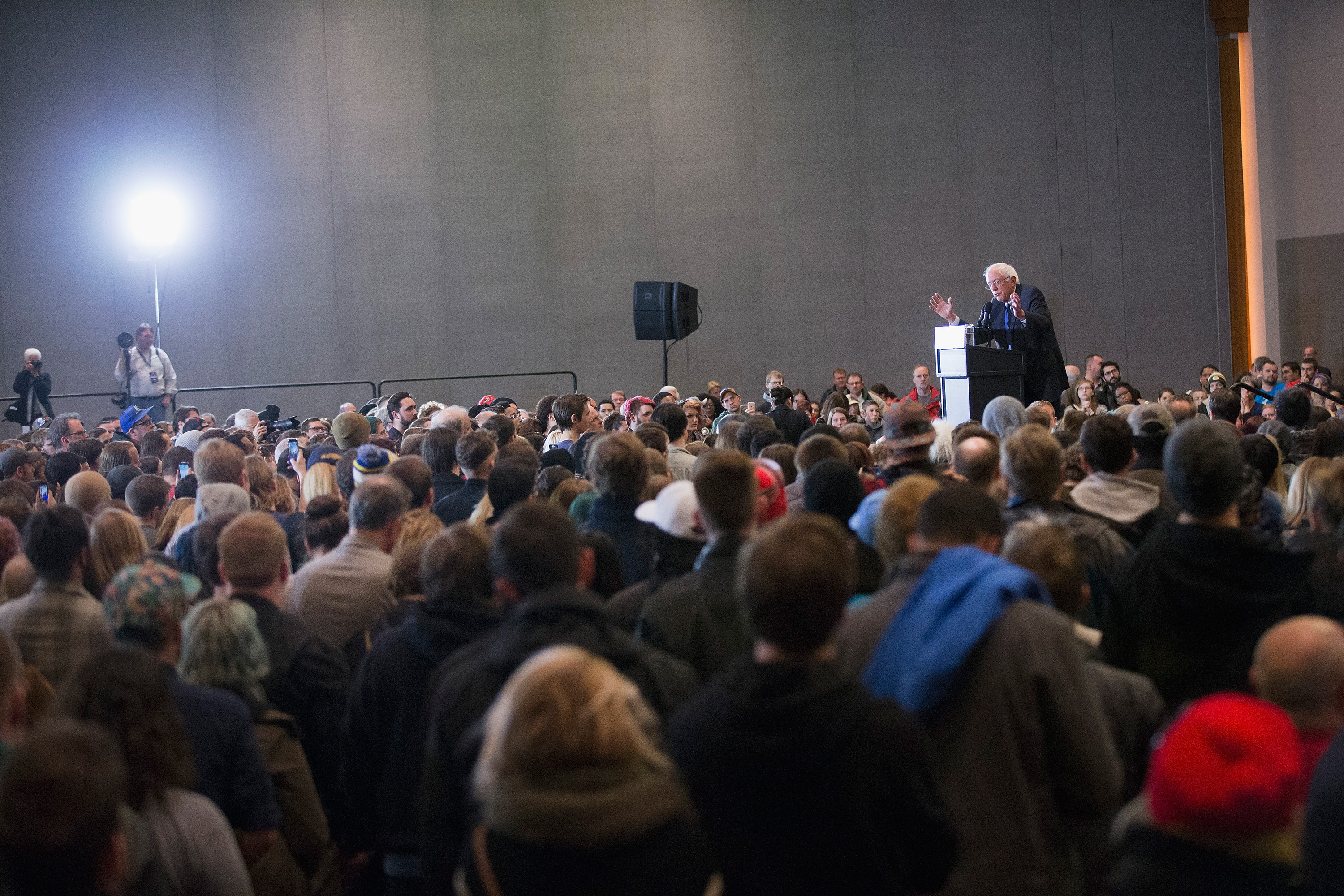 MILWAUKEE, WISCONSIN – APRIL 04: Democratic presidential candidate Senator Bernie Sanders (D-VT) speaks to guests at a campaign rally at the Wisconsin Convention Center on April 4, 2016 in Milwaukee, Wisconsin. Voters in Wisconsin go to the polls tomorrow for the state’s primary. (Photo by Scott Olson/Getty Images)
