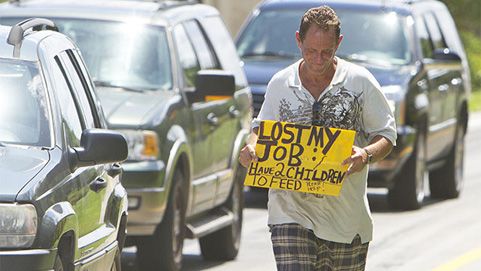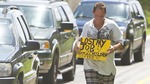 FILE – In a Thursday, Sept. 16, 2010 file photo, a man who did not wish to be identified, who lost his job two months ago after being hurt on the job, works to collect money for his family on a Miami street corner. The ranks of America’s poor have climbed to a record high, according to new census data that paints a stark portrait of the nation’s haves and have-nots at a time when unemployment remains persistently high. (AP Photo/J Pat Carter, File)