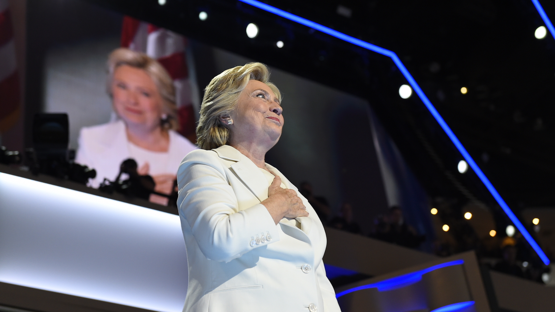 Hillary Clinton addresses the Democratic National Convention in Philadelphia on Thursday, July 28, 2016. (Photo by Michael Robinson Chavez/The Washington Post via Getty Images)