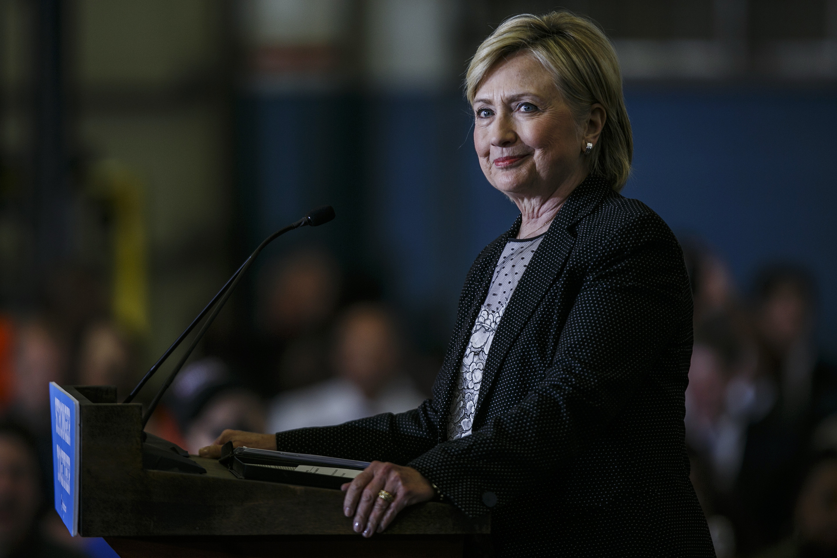 Hillary Clinton, 2016 Democratic presidential nominee, smiles while speaking during a campaign event in Warren, Michigan, U.S., on Thursday, Aug. 11, 2016. On Wednesday, the Clinton campaign launched “Together for America,” an initiative to recruit GOP endorsements, and announced support from nearly 50 Republicans, including George W. Bush’s former Director of National Intelligence John Negroponte. Photographer: Sean Proctor/Bloomberg via Getty Images