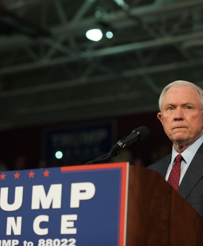 ABRIDGE, PA – OCTOBER 10: Alabama Senator Jeff Sessions pledges his commitment to Republican candidate for President Donald J Trump before he speaks to supporters at a rally at Ambridge Area Senior High School on October 10, 2016 in Ambridge, Pennsylvania. Ambridge, Pennsylvania, named after the American Bridge Company, a steel fabricating plant that employed 60,000 workers is a traditionally Democratic stronghold, but is shifting Republican as a shrinking tax base and lost jobs having devastating economic effects on the former industrial community. (Photo by Jeff Swensen/Getty Images)