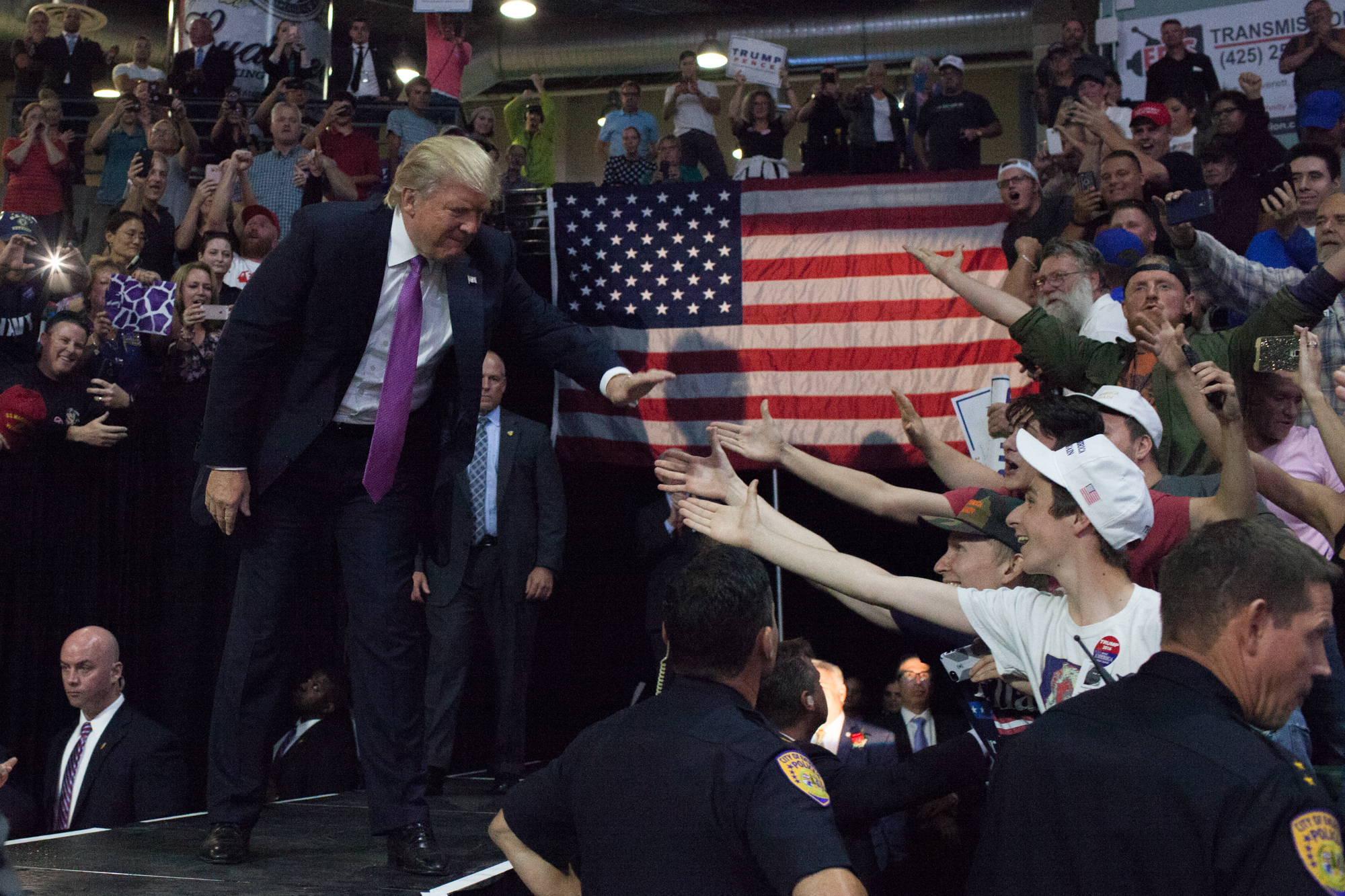 EVERETT, WA – AUGUST 30: Donald Trump arrives to a campaign rally on August 30, 2016 in Everett, Washington. Trump addressed immigration issues on the same night that his campaign confirmed an August 31 meeting with Mexico’s President Enrique Peña Nieto. (Photo by Matt Mills McKnight/Getty Images)