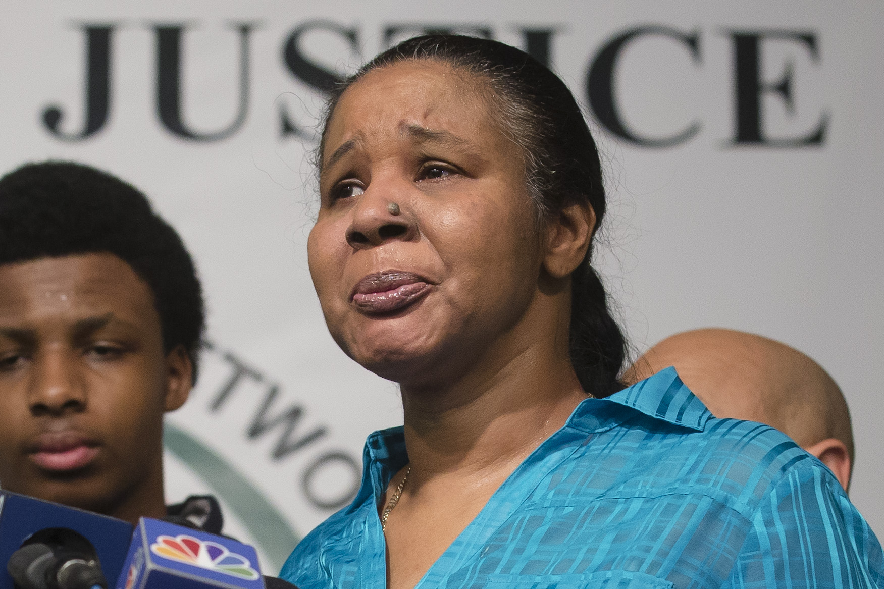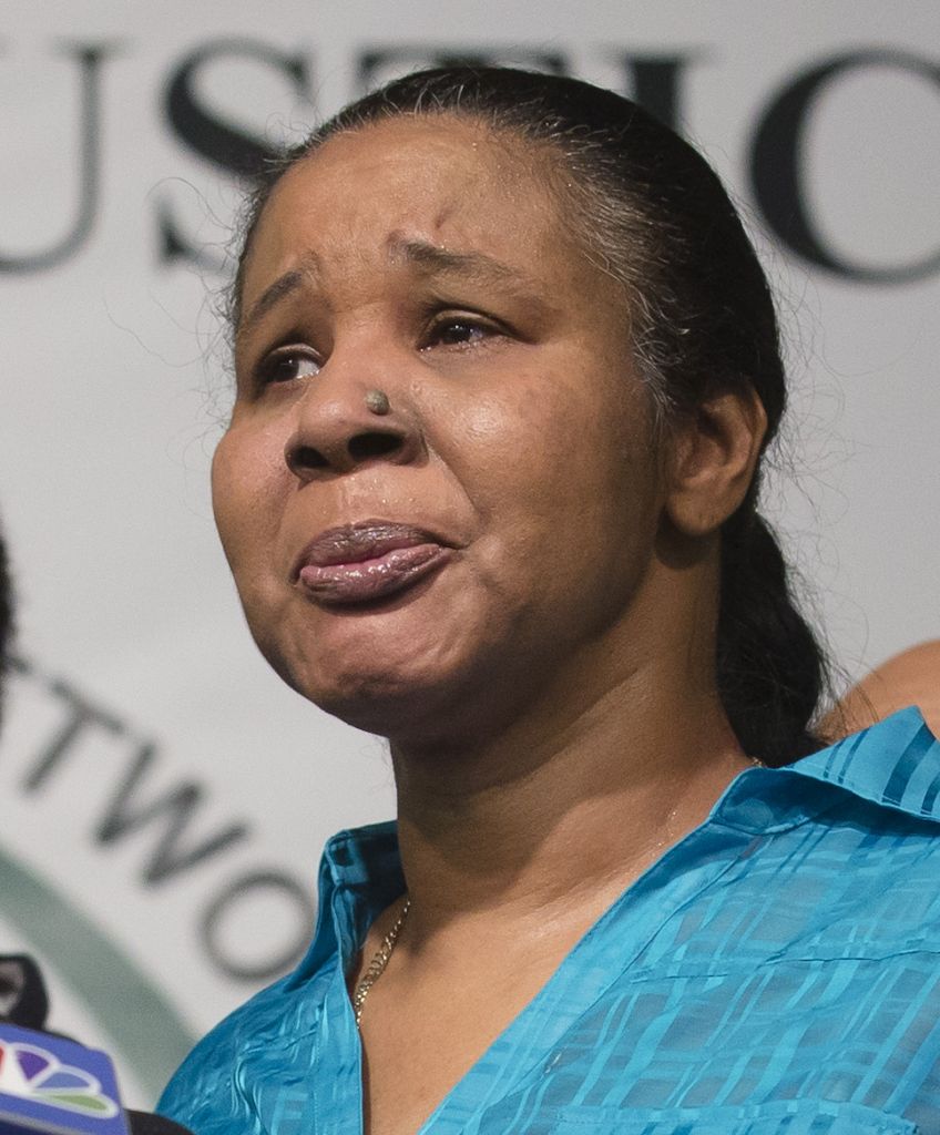 Esaw Garner, wife of Eric Garner, attends a news conference at the National Action Network headquarters in New York on Wednesday, Dec. 3, 2014 after a grand jury’s decision not to indict a New York police officer involved in her husband’s death. A video shot by an onlooker and widely viewed on the Internet showed the 43-year-old Garner telling a group of police officers to leave him alone as they tried to arrest him. The city medical examiner ruled Garner’s death a homicide and found that a chokehold contributed to it. (AP Photo/John Minchillo)