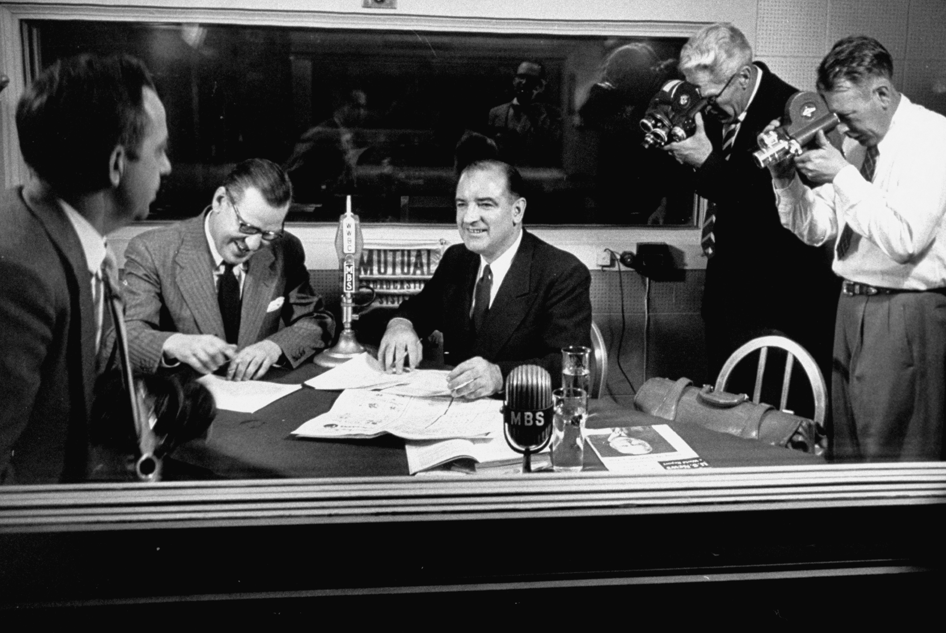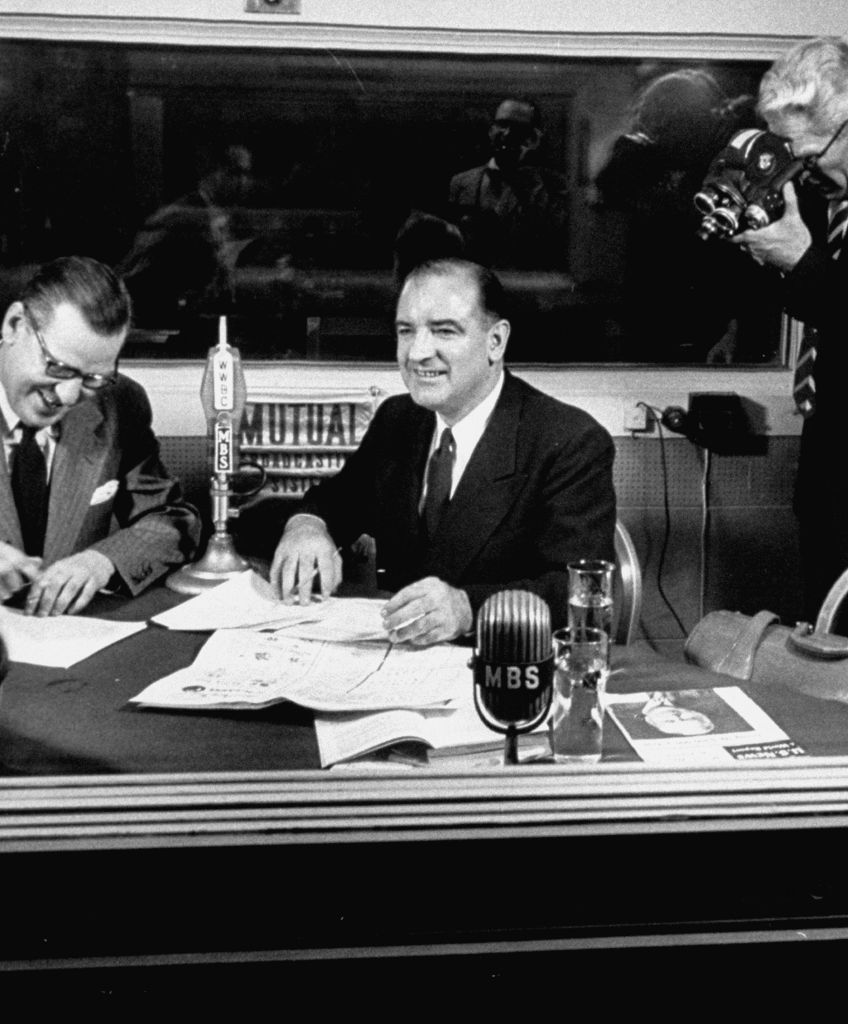 Fulton Jr. Lewis;Joseph R. Mccarthy Published June 16, 2016 at 3062 × 2048 in Fulton Jr. Lewis;Joseph R. Mccarthy Radio news commentator Fulton Lewis Jr. interviewing Sen. Joseph R. McCarthy (C), during the Army-McCarthy hearings. (Photo by Hank Walker/The LIFE Picture Collection/Getty Images)