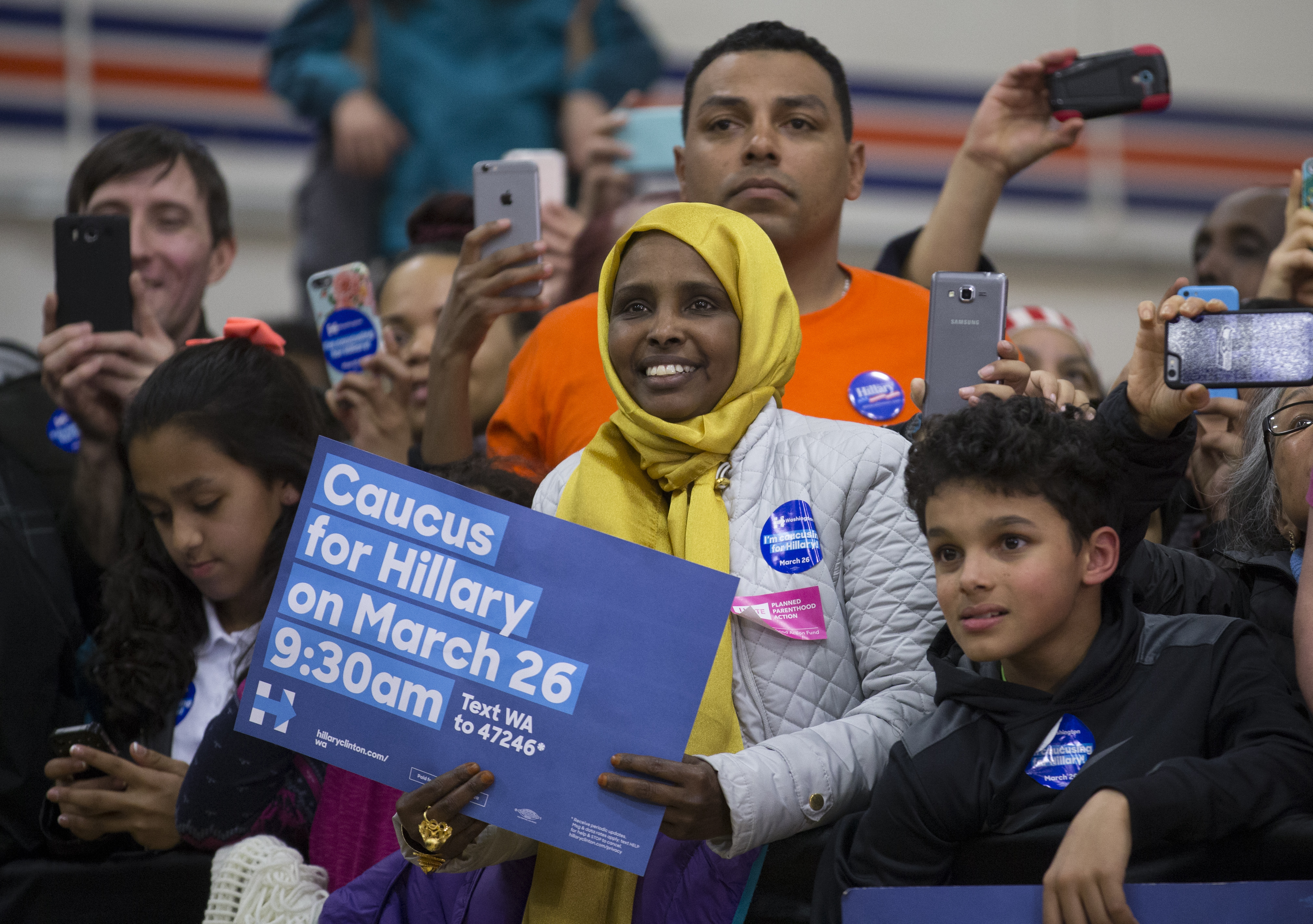 SEATTLE, WA – MARCH 22: Supporters of Democratic presidential candidate Hillary Clinton cheer during a rally at Rainier Beach High School on March 22, 2016 in Seattle, Washington. Clinton was spending the day in Washington ahead of the state’s Democratic Party caucuses on March 26. (Photo by Stephen Brashear/Getty Images)