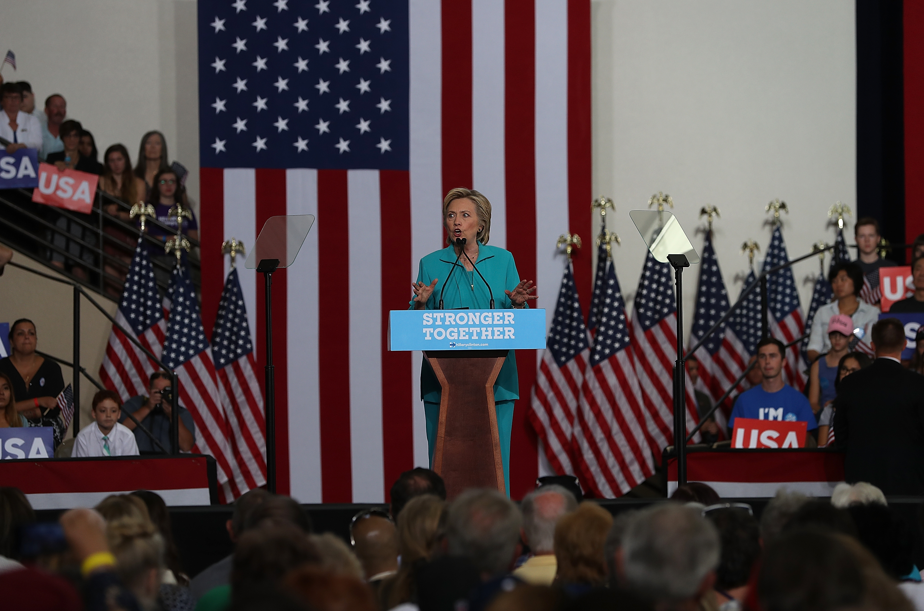 RENO, NV – AUGUST 25: Democratic presidential nominee former Secretary of State Hillary Clinton speaks during a campaign even at Truckee Meadows Community College on August 25, 2016 in Reno, Nevada. Hillary Clinton delivered a speech about republican presidential nominee Donald Trump’s policies. (Photo by Justin Sullivan/Getty Images)