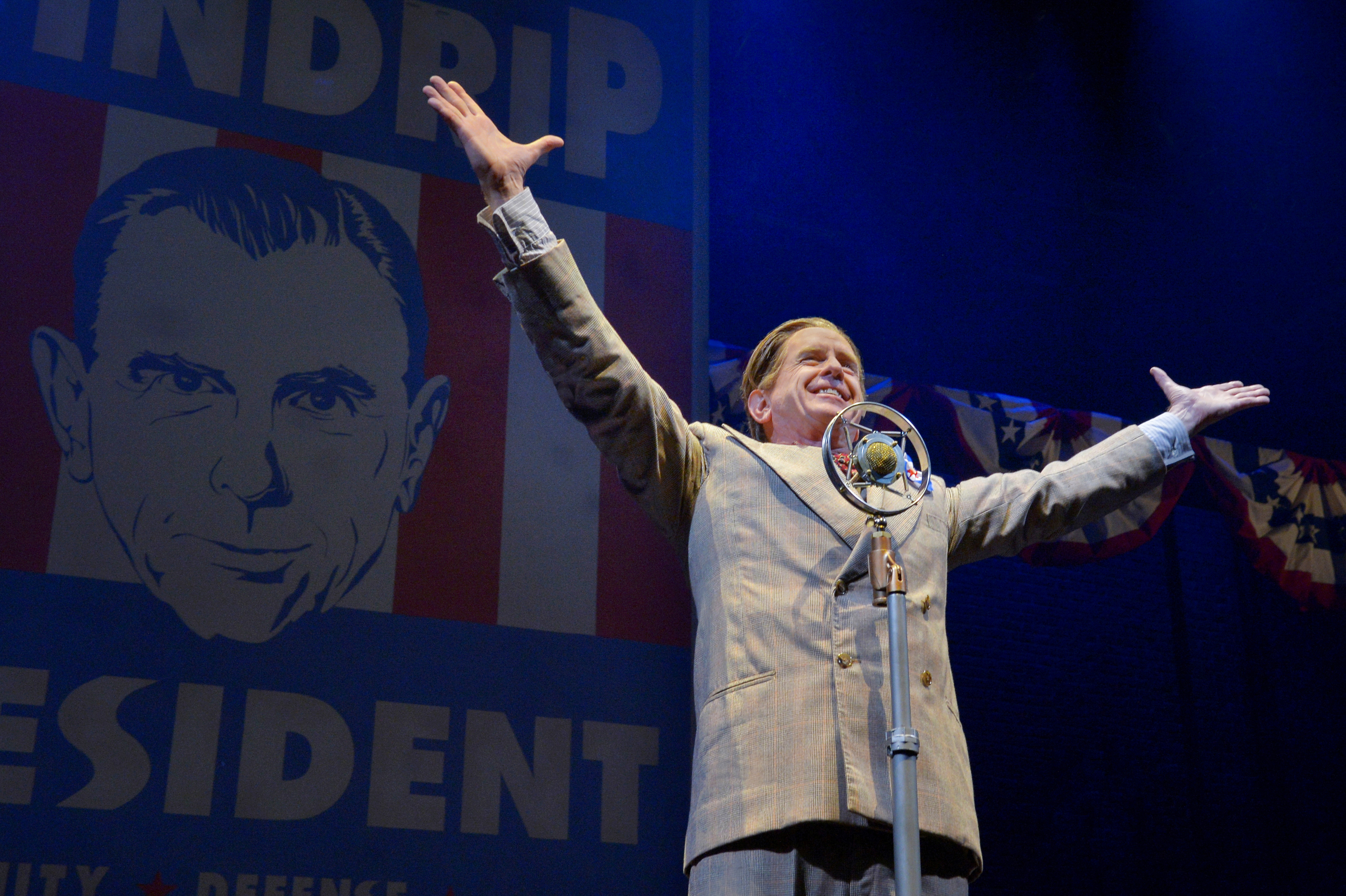 Actor David Kelly playing populist demagogue Buzz Windrip in the Berkeley Repertory Theatre's adaptation of It Can't Happen Here , Sinclair Lewis' 1935 novel about the coming of dictatorship to America. (Photo by Kevin Berne/Berkeley Repertory Theatre)