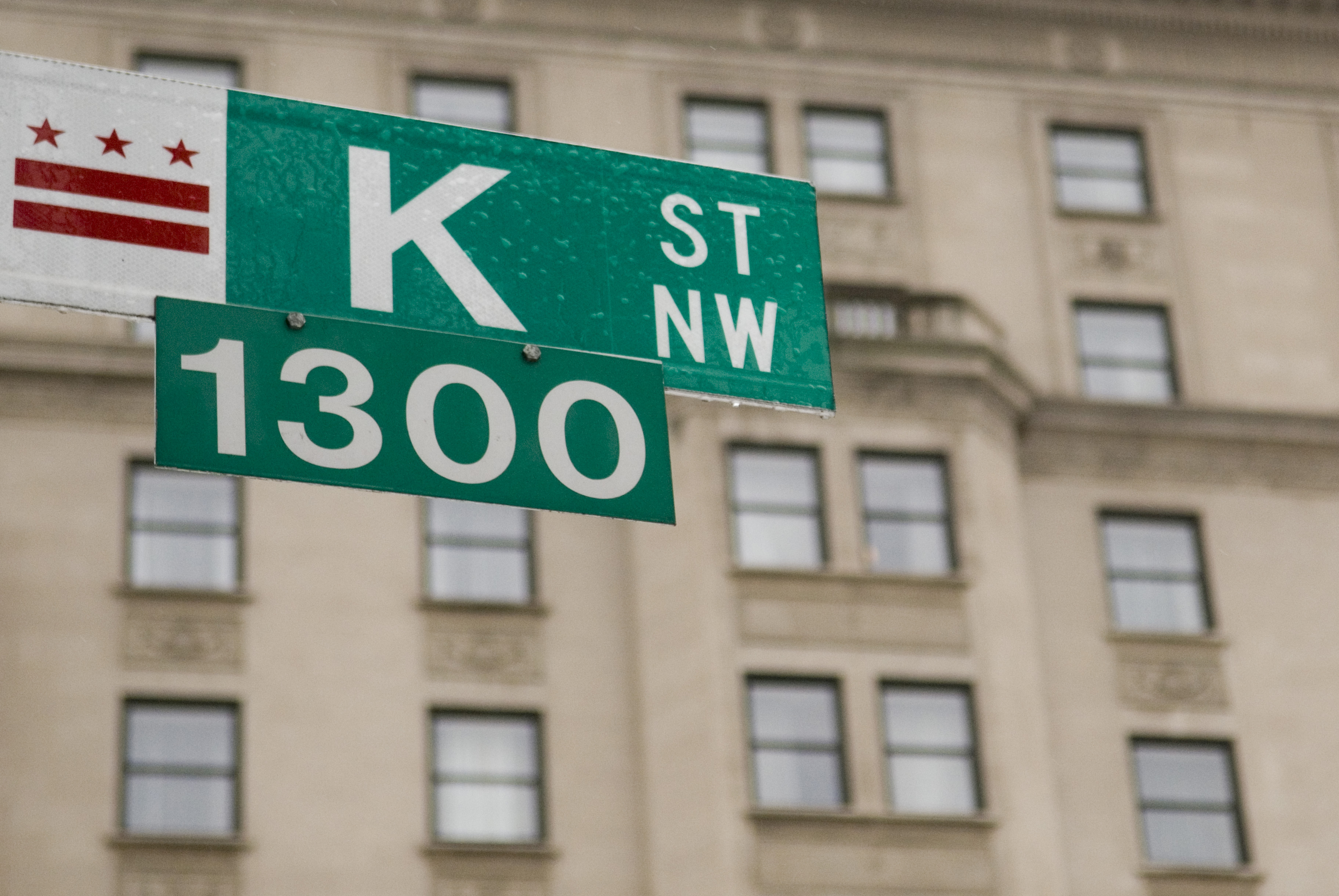 A thin coat of ice covers a K Street sign in Washington on Feb. 14, 2007. (Photo By Bill Clark/Roll Call/Getty Images)