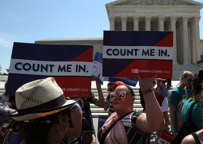 censusbox Published February 5, 2021 at 657 × 465 in Moyers & Company People gather in in front of the U.S. Supreme Court as decisions are handed down on June 27, 2019 in Washington, DC. The high court blocked a citizenship question from being added to the 2020 Census. (Photo by Mark Wilson/Getty Images)