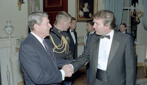 President Ronald Reagan Shaking Hands with Donald Trump at a Reception on November 3, 1987. (National Archives)
