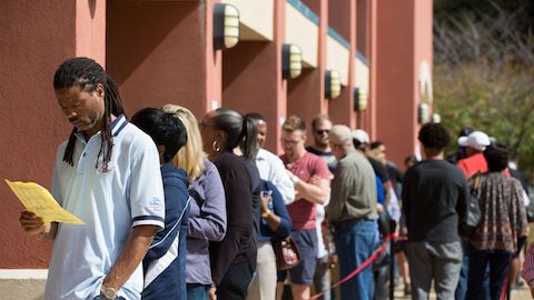 MARIETTA, GA – OCTOBER 18: Voters wait in line for up to two hours to early vote at the Cobb County West Park Government Center on October 18, 2018 in Marietta, Georgia. Early voting started in Georgia on October 15th. Georgia’s Gubernatorial election is a close race between Democratic candidate Stacey Abrams and Republican candidate Brian Kemp. (Photo by Jessica McGowan/Getty Images)