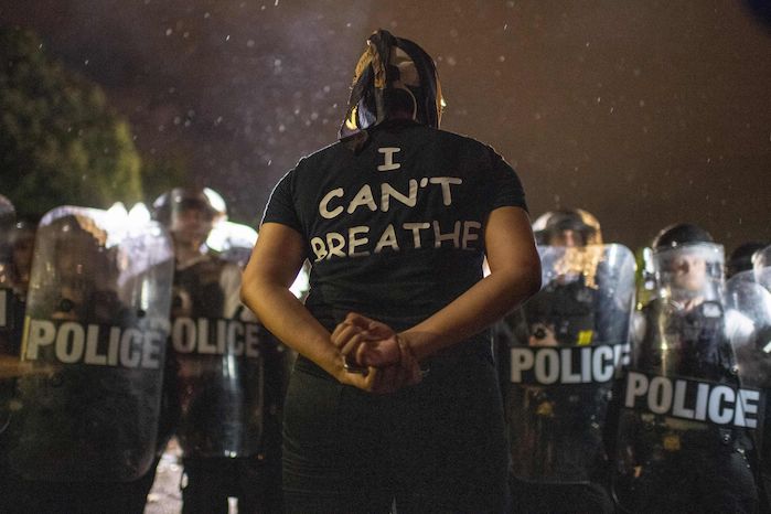 Protesters face off with police outside the White House in Washington, DC, early on May 30, 2020 during a demonstration over the death of George Floyd, a black man who died after a white policeman knelt on his neck for several minutes. – Violent protests erupted across the United States late on May 29 over the death of a handcuffed black man in police custody, with murder charges laid against the arresting Minneapolis officer failing to quell boiling anger. (Photo by Eric BARADAT / AFP) (Photo by ERIC BARADAT/AFP via Getty Images)