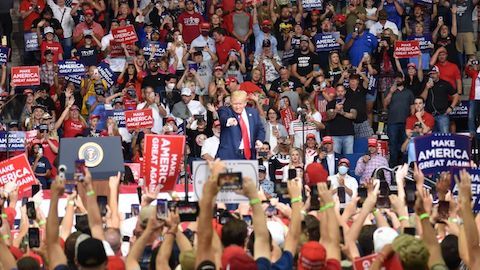 Trump-Rally Published September 30, 2020 at 480 × 270 in Moyers & Company TULSA, USA – JUNE 20: U.S. President Donald Trump meet his supporters at his ”Make America Great Again” rally in Tulsa, Oklahoma, United States on June 20, 2020. (Photo by Kyle Mazza/Anadolu Agency via Getty Images)