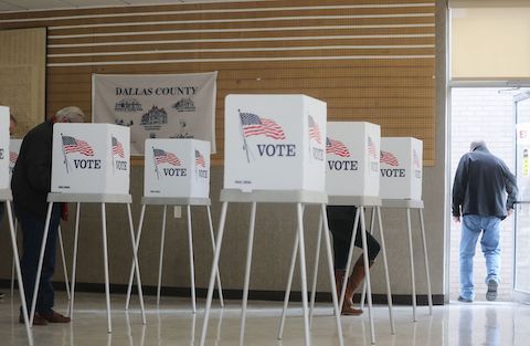ADEL, IOWA – OCTOBER 29: Voters participate in early voting in the 2020 presidential election on October 29, 2020 in Adel, Iowa. Voters in the battleground state of Iowa are casting their ballots with less than one week to go before Election Day. (Photo by Mario Tama/Getty Images)