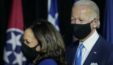 WILMINGTON, DE – AUGUST 12: Presumptive Democratic presidential nominee former Vice President Joe Biden and his running mate Sen. Kamala Harris (D-CA) arrive to deliver remarks at the Alexis Dupont High School on August 12, 2020 in Wilmington, Delaware. Harris is the first Black woman and first person of Indian descent to be a presumptive nominee on a presidential ticket by a major party in U.S. history. (Photo by Drew Angerer/Getty Images)