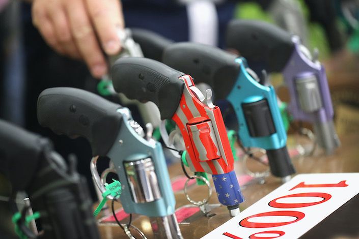 LOUISVILLE, KY – MAY 21: Gun enthusiasts look over Charter Arms pistols at the NRA Annual Meetings & Exhibits on May 21, 2016 in Louisville, Kentucky. About 80,000 visitors are expected to attend the three-day event. (Photo by Scott Olson/Getty Images)