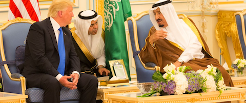 President Donald Trump and King Salman bin Abdulaziz Al Saud of Saudi Arabia talk together during ceremonies at the Royal Court Palace in Riyadh, Saudi Arabia on May 20, 2017. (Official White House photo by Shealah Craighead / flickr Public Domain)