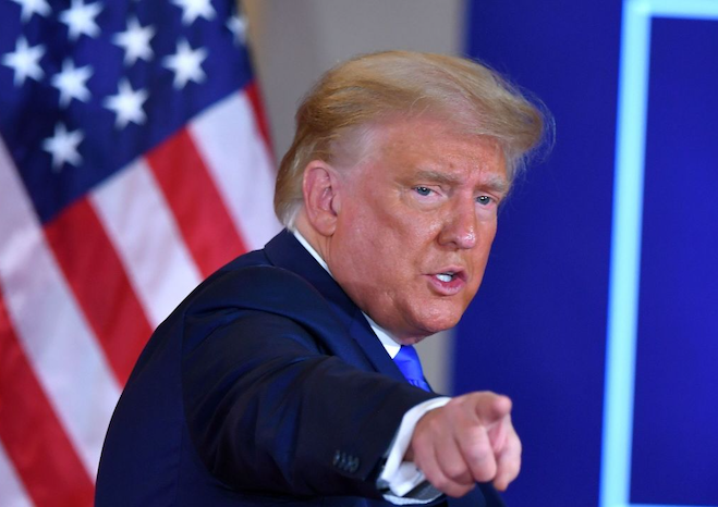 trumpfingerpointingobx Published January 13, 2021 at 659 × 466 in Moyers & Company TOPSHOT – US President Donald Trump gestures after speaking during election night in the East Room of the White House in Washington, DC, early on November 4, 2020. (Photo by MANDEL NGAN / AFP) (Photo by MANDEL NGAN/AFP via Getty Images)