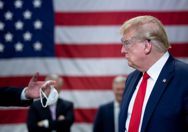 President Donald Trump tours a Honeywell International Inc. factory producing N95 masks during his first trip since widespread COVID-19 related lockdowns went into effect May 5, 2020, in Phoenix, Arizona. (Photo by Brendan Smialowski / AFP via Getty Images)