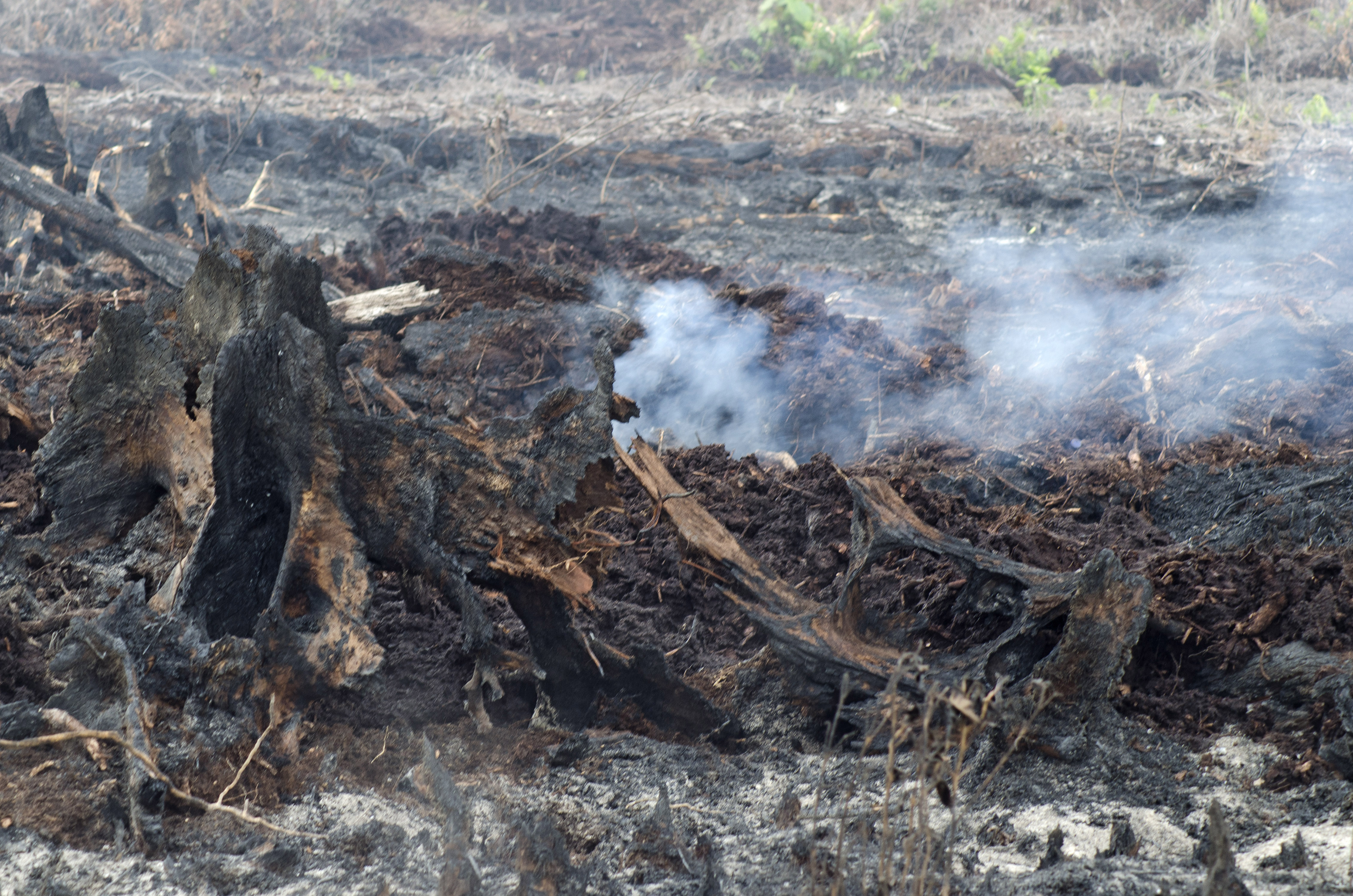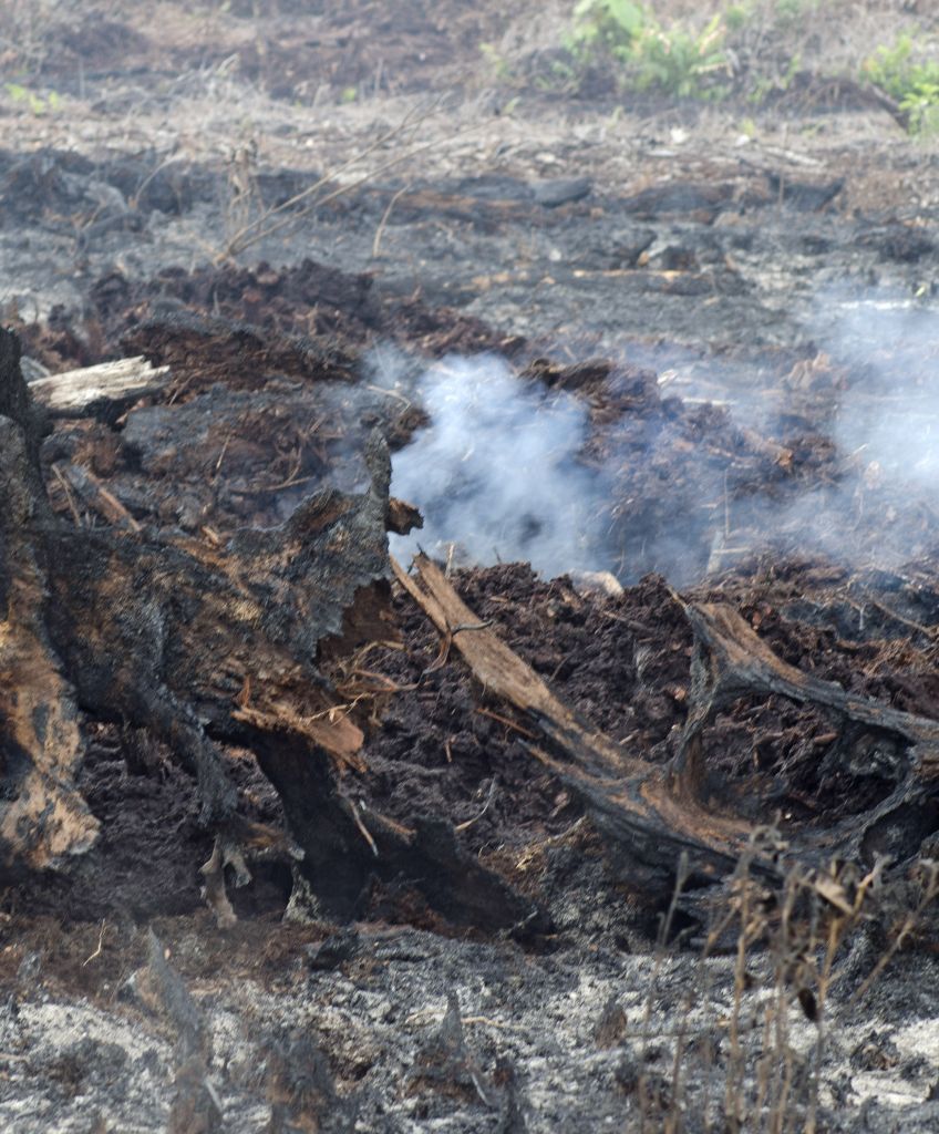 Peat bog fires are burning, Indonesian police extinguisher spray water a fire on burning peatland forest on the Rimbo Panjang village, Kampar district of riau province, indonesia;September, 1, 2016. Indonesia’s forest fires will happen again.Forest and plantation fires on Indonesia’s Sumatra island at the onset of the dry season (Photo by Afrianto Silalahi/NurPhoto via Getty Images)