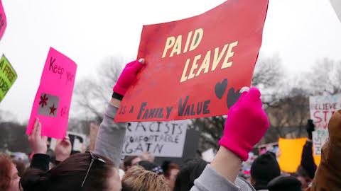 Paid-Leave-sign-womens-march Published March 2, 2021 at 480 × 270 in Paid-Leave-sign-womens-march “Paid Leave is a Family Value” sign in the Women’s March on Washington, DC, Jan. 21, 2017. (Photo courtesy of Ellen Bravo) women, paid leave protest