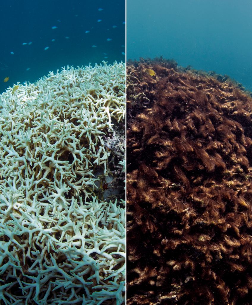 The Ocean Agency – XL Catlin Seaview Survey – Richard Vevers; Christophe Bailhache. Published October 24, 2017 at 2880 × 1920 in The Ocean Agency – XL Catlin Seaview Survey – Richard Vevers; Christophe Bailhache. A before and after photo of coral bleaching and later dying in March – May 2016, at Lizard Island on the Great Barrier Reef (Photo courtesy of XL Catlin Seaview Survey, The Ocean Agency)