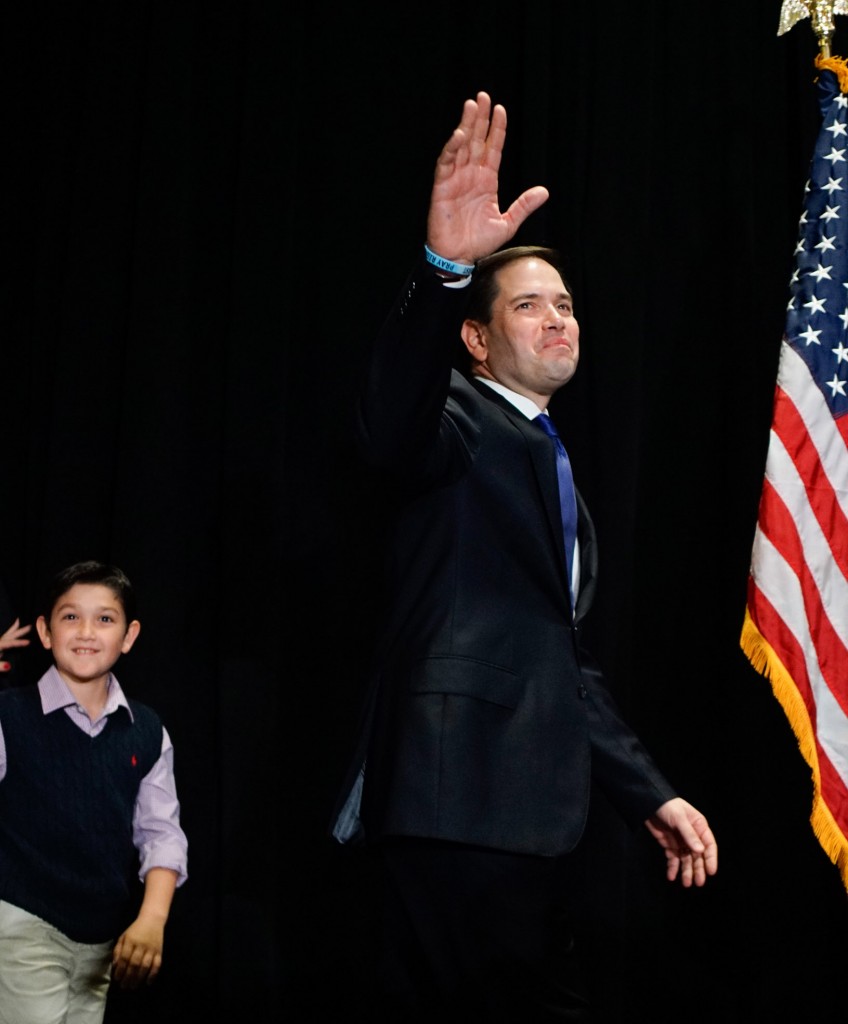 MIAMI, FL – MARCH 15: Republican presidential candidate U.S. Senator Marco Rubio (R-FL) walks on stage with his family at a primary night rally on March 15, 2016 in Miami, Florida. Rubio announced he was suspending his campaign after losing his home state to Republican rival Donald Trump. (Photo by Angel Valentin/Getty Images)
