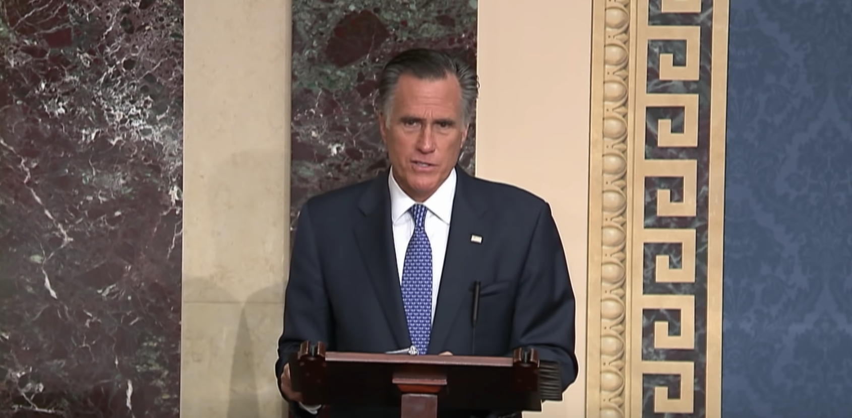 Sen. Mitt Romney announcing he will vote to convict Trump.