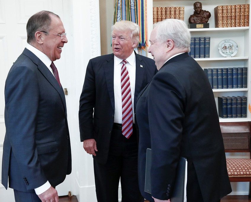 WASHINGTON, USA – MAY 10: US President Donald Trump (C) and Russia’s Foreign Minister Sergei Lavrov (L) meet at the Oval Office of White House in Washington, D.C., United States on May 10, 2017. (Photo by Russia Foreign Minister Press Ofice /Anadolu Agency/Getty Images)