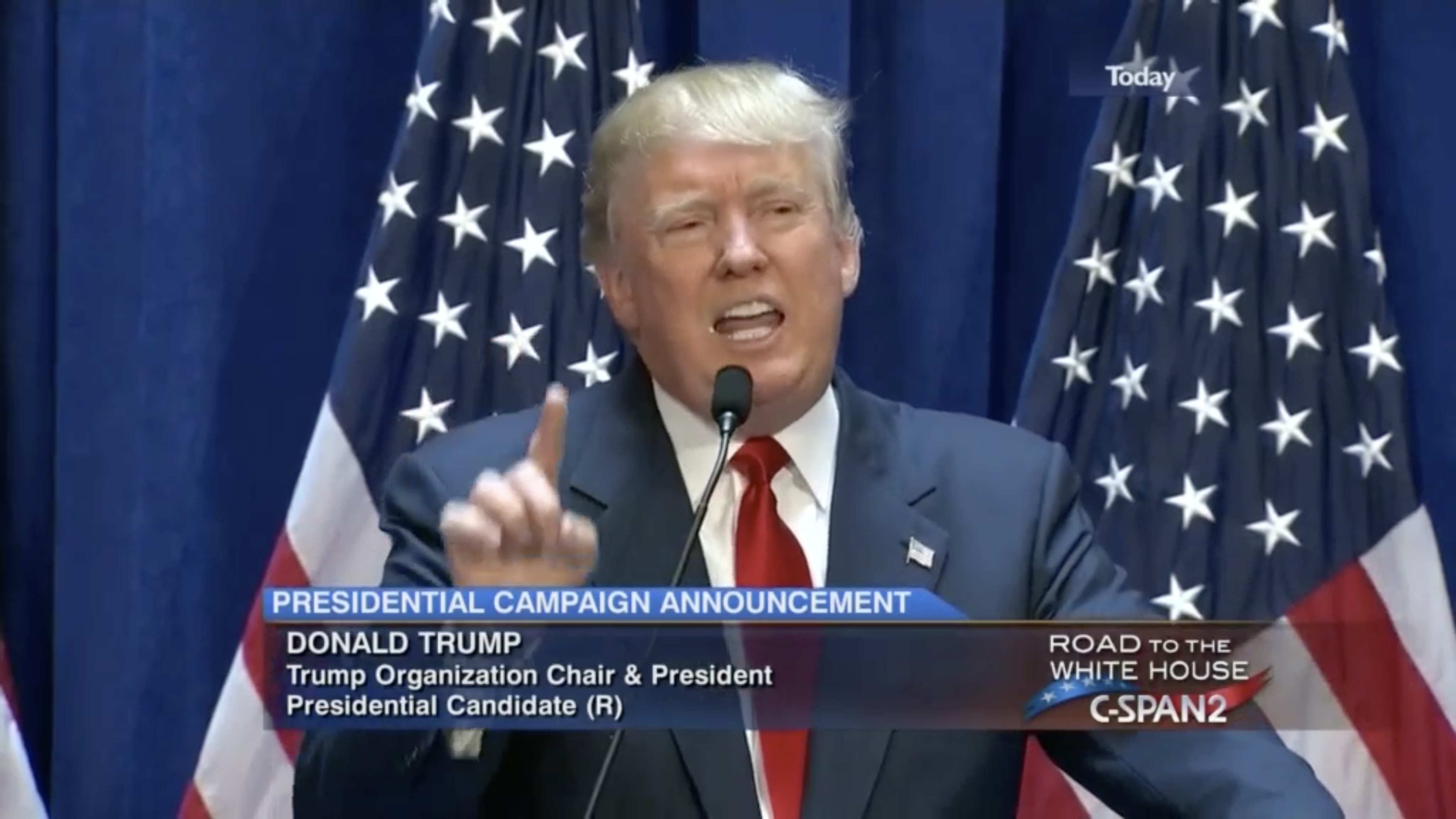 Trump announces presidential run Published July 26, 2017 at 4096 × 2304 in Trump announces presidential run (C-SPAN)