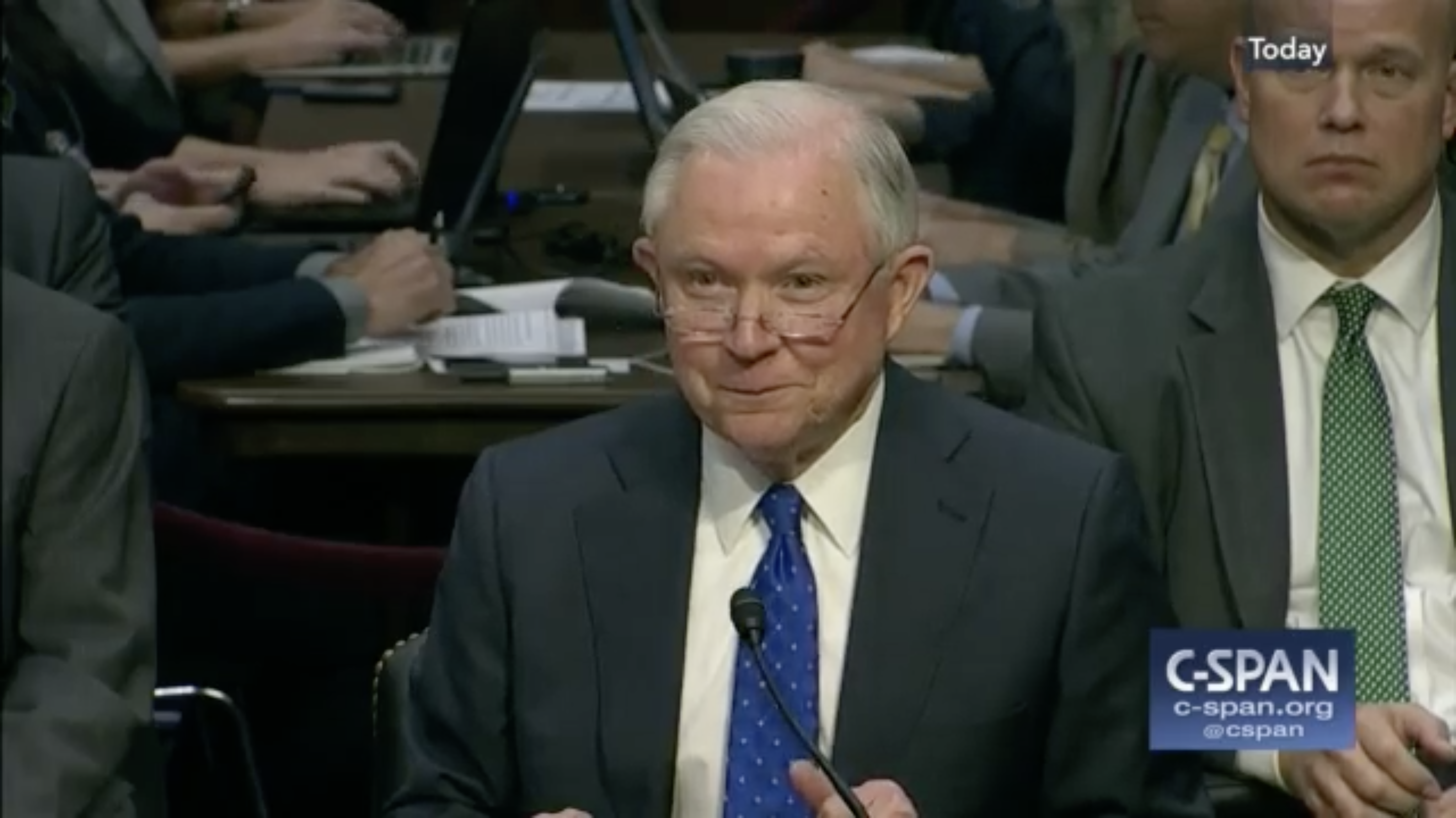 Screen Shot 2017-10-24 at 12.25.40 PM Published October 24, 2017 at 4096 × 2304 in Screen Shot 2017-10-24 at 12.25.40 PM Jeff Sessions testifies before the Senate Judiciary Committee. (C-SPAN)
