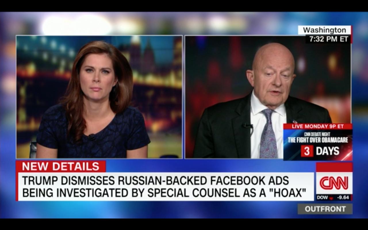 Clapper on CNN Published October 27, 2017 at 1280 × 800 in Clapper on CNN On CNN, former Director of National Intelligence James Clapper says, “Our intelligence community assessment did, I think, serve to cast doubt on the legitimacy of his victory in the election.” (CNN)