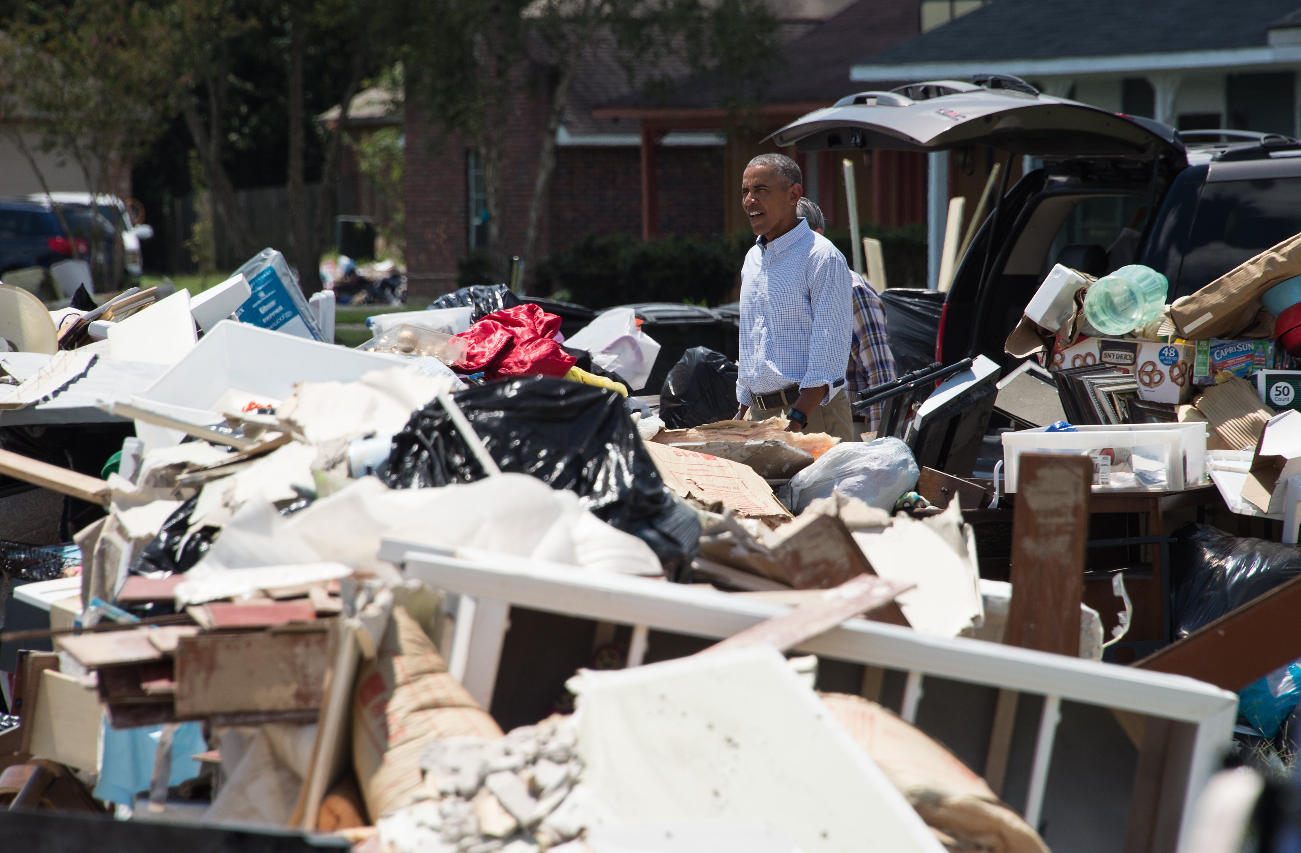 Published August 24, 2016 at 4384 × 2873 in President Barack Obama visited flood-stricken Louisiana Tuesday, offering support to devastated communities. (Photo: Nicholas Kamm/AFP/Getty Images)