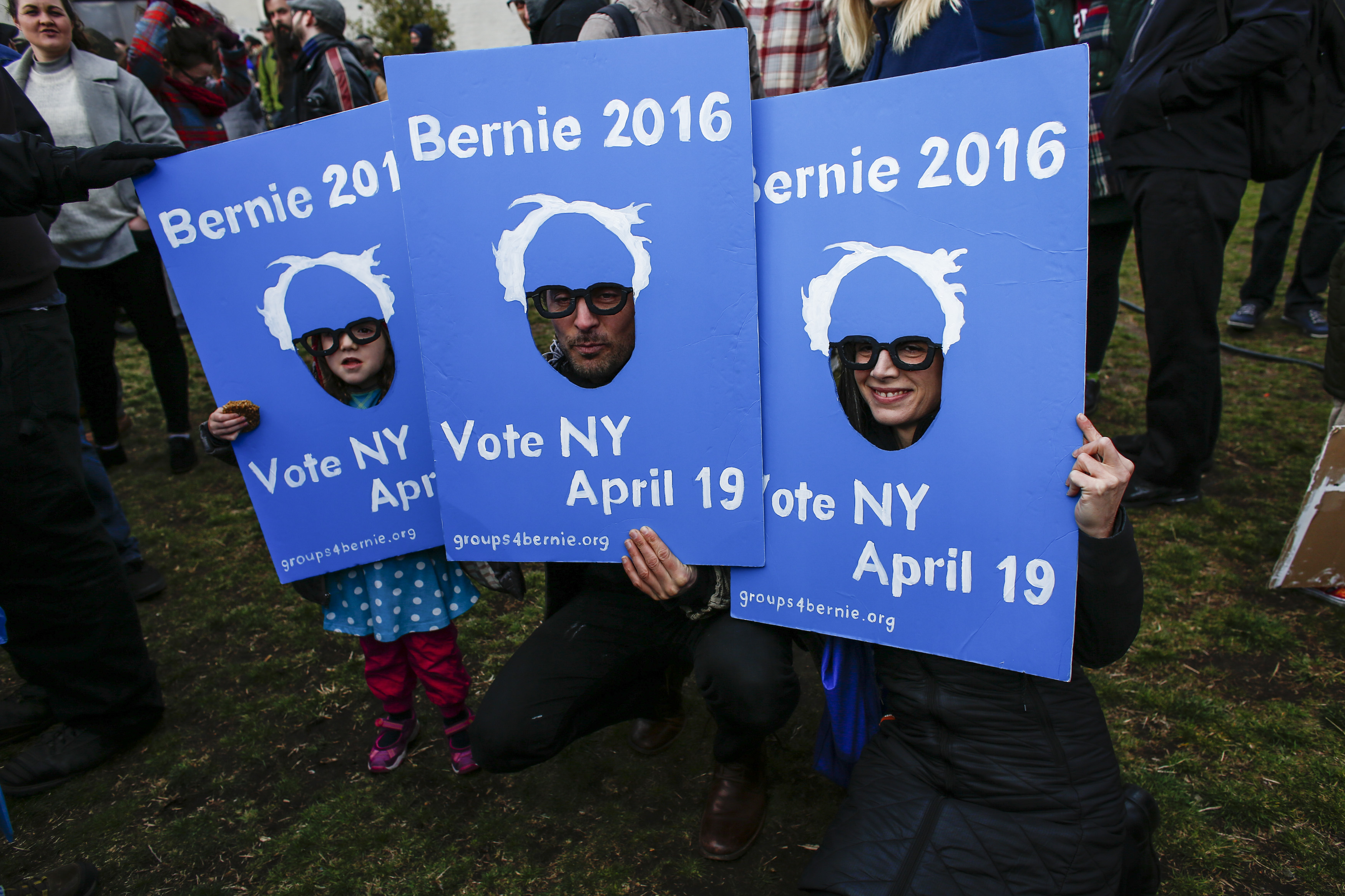 Bernie Sanders supporters pose for a picture before a rally in New York on April 8,2016. (KENA BETANCUR/AFP/Getty Images)