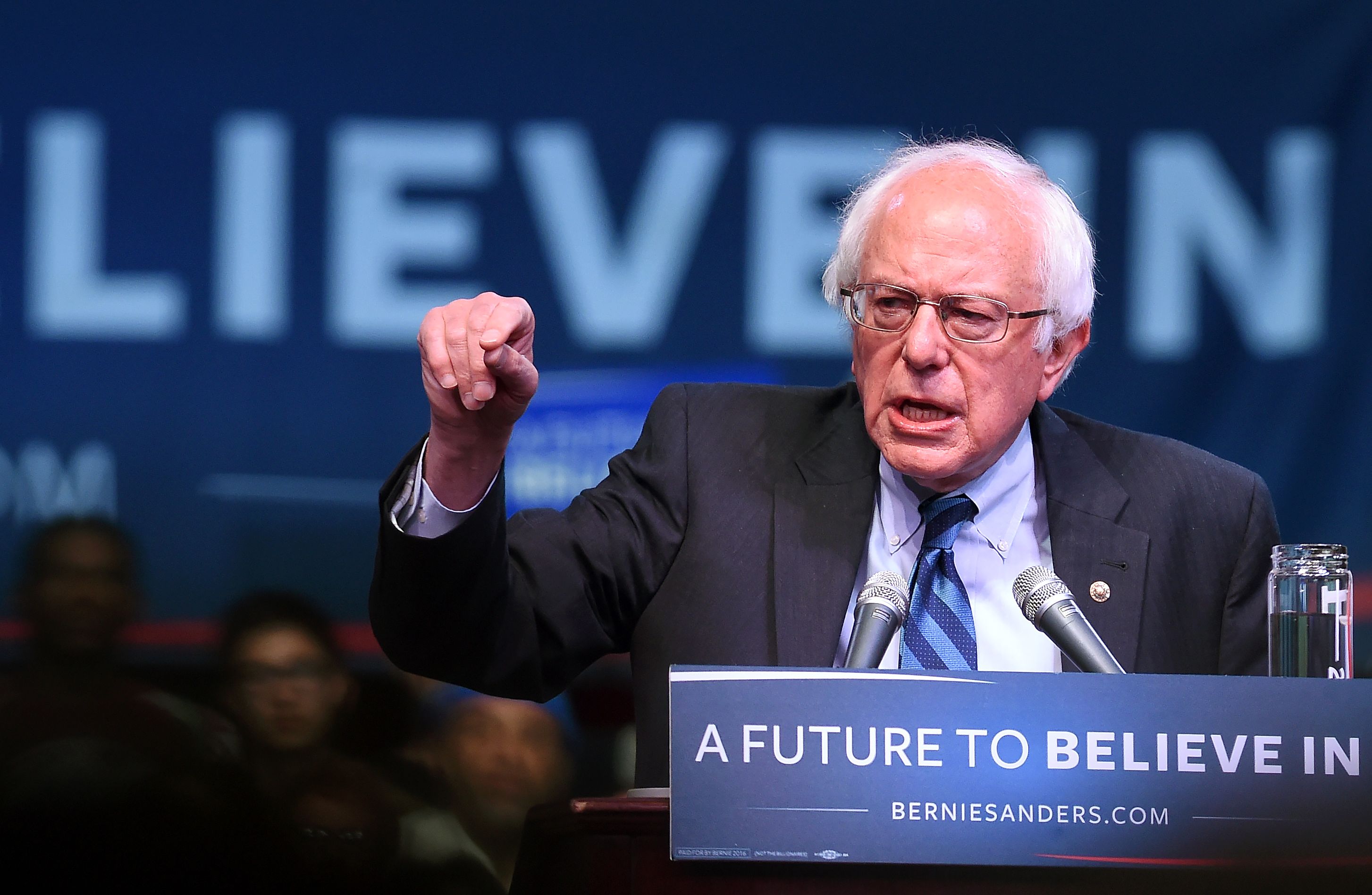 US Democratic presidential candidate Bernie Sanders speaks during a rally in Atlantic City, New Jersey, on May 9, 2016. / AFP / Jewel SAMAD (Photo credit should read JEWEL SAMAD/AFP/Getty Images)